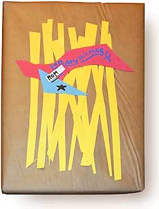 White Wrap with Stickers At last— a use for all those little stickers that come in direct-mail marketing letters. This package always gets a laugh. |