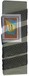 The paper for this package was a gray shopping bag which had a white "label" imprinted with the retailer's logo. I made a small, 3-piece collage on this imprint. I added the recipient's initials. Then I wrapped a piece of gauze ribbon in a spiral around the package. The finished wrap had a stimulating variety of textures, with subdued, tasteful coloring. |